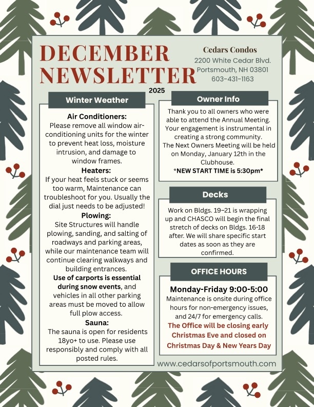 When discarding your tree, PLEASE PLEASE PLEASE do not drag it over the stairways and through the halls. Cleaning the building common areas already provides our housekeepers with sufficient challenge – they do not need the additional burden of pine needles and tinsel!
