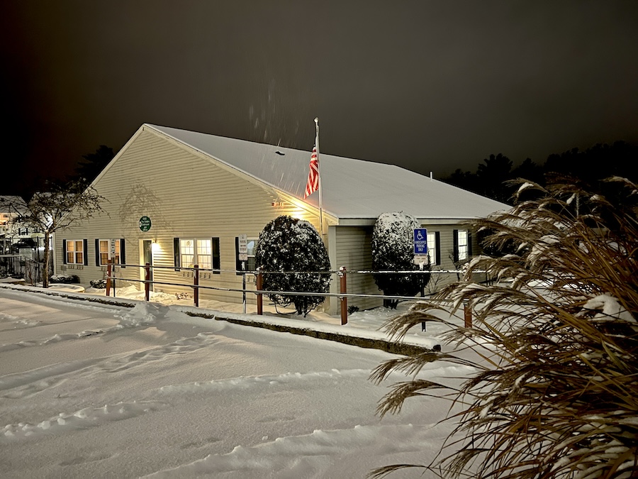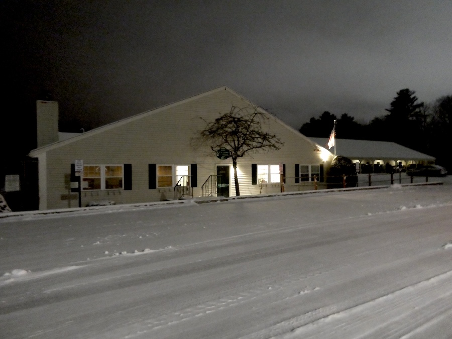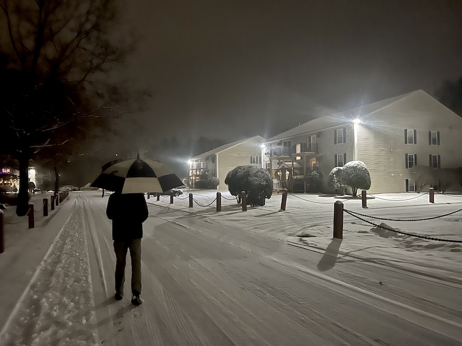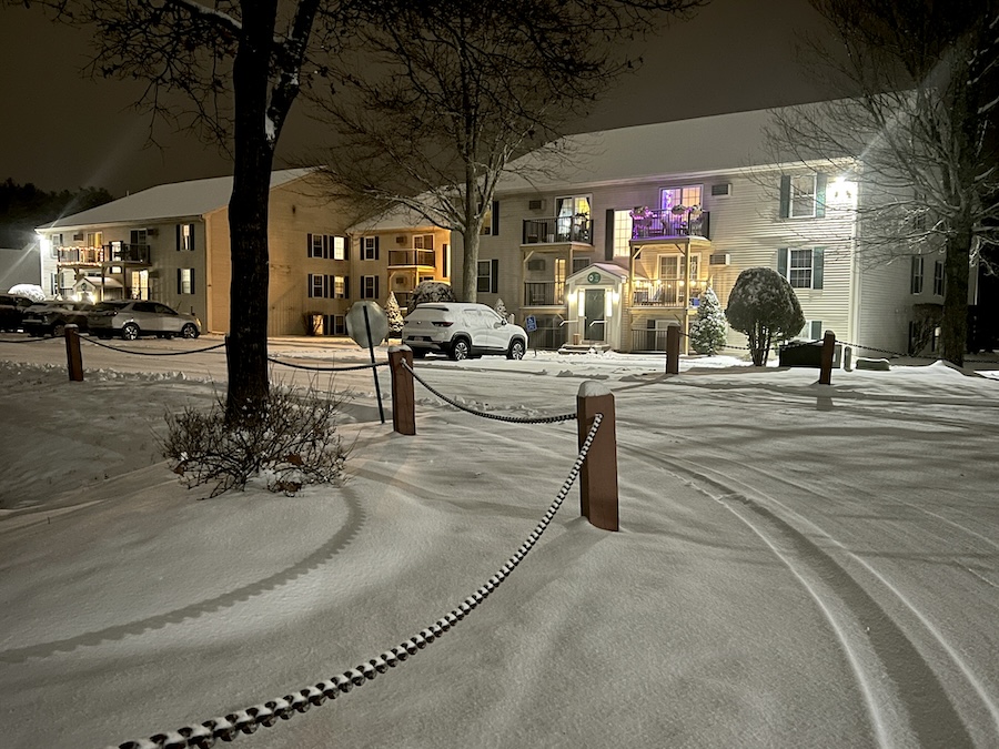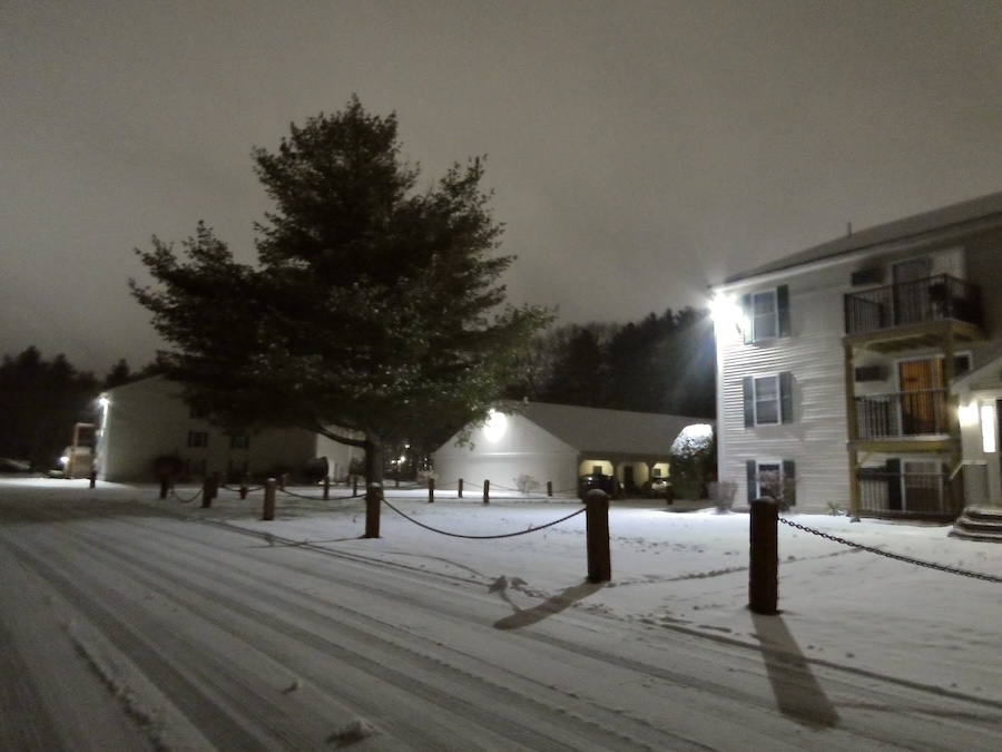 Today we picked up a fresh layer of snow that brightened the community and gave the grounds a white wintery look. The evening stroll through it all had a nice, quiet feel to it.