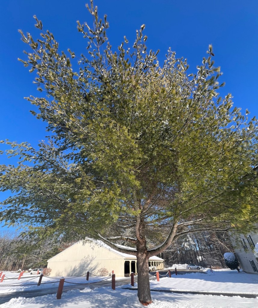 The central disposal area for Christmas trees is indicated with an “X” and a red arrow on the site plan below. It’s the right-hand side of the access road to the maintenance area.